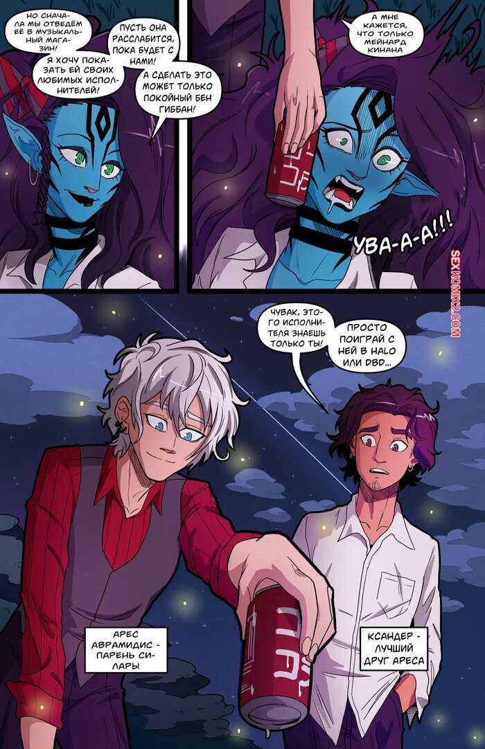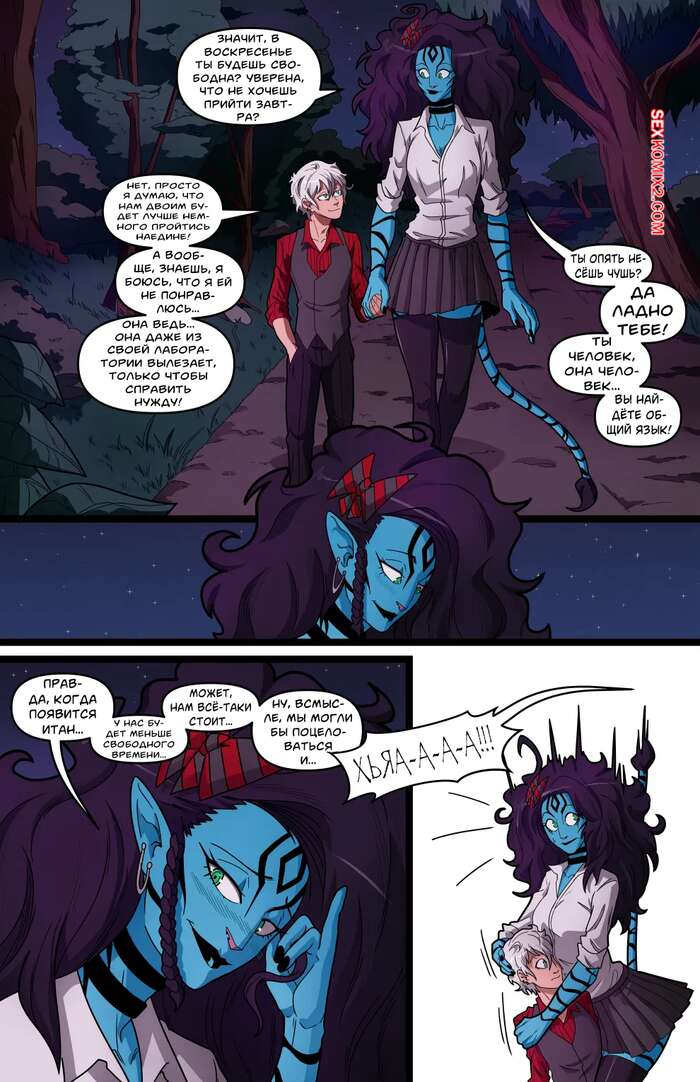 Порно комикс Avatar. Громадная пропасть, что разверзлась между нами. Swain Парни встретились ночью в парке с горячими подругами. Ребята разбились на пары, чтобы побыть наедине. Красотки начинают соблазнять стеснительных дружков, желая пошалить.